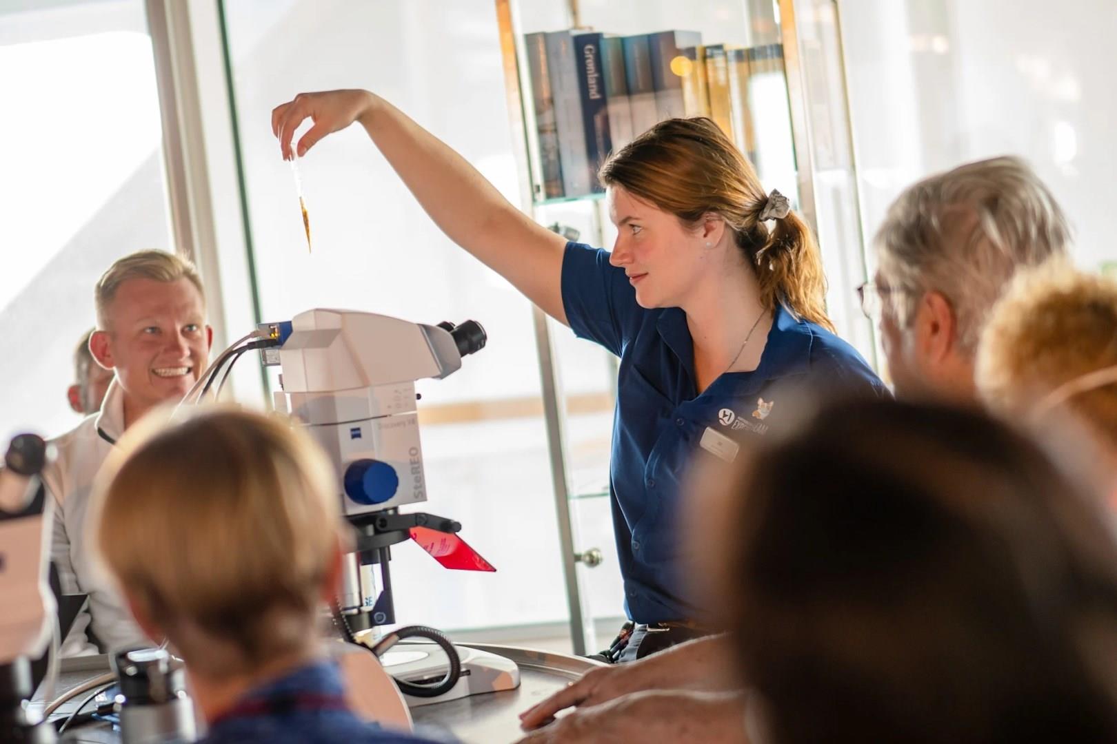 Often described by guests as “the heart of an HX ship,” our interactive science program is like nothing you'll find elsewhere. Join our onboard scientists, hear from experts, collect samples, and get involved in our citizen science projects. Spot something new with fellow birders or spend time studying what we find under the microscope.